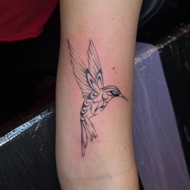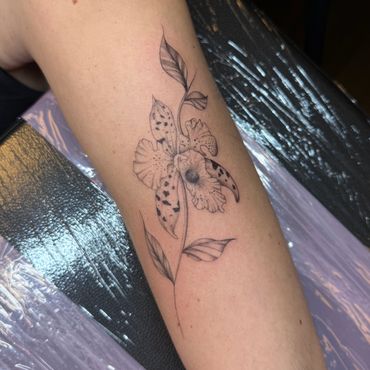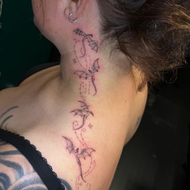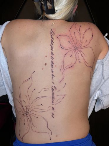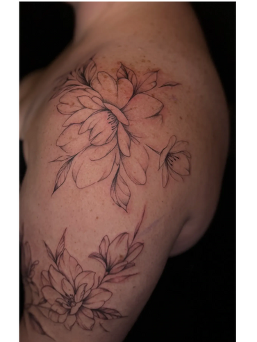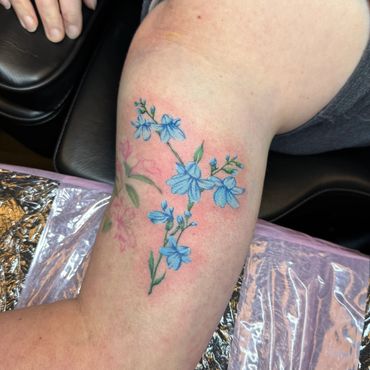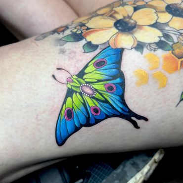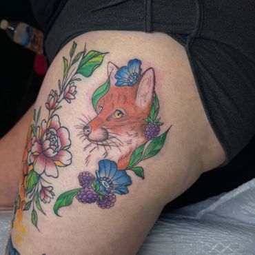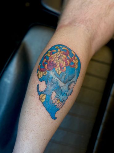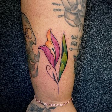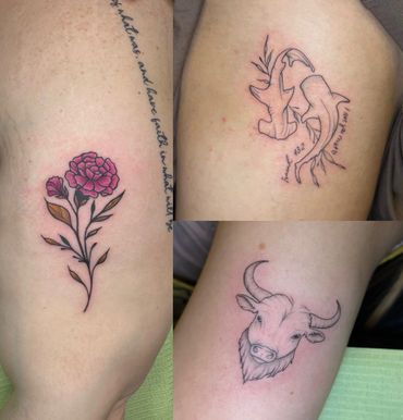 I’ve always loved painting, sculpting, and creating — and now I get to give people permanent art they can carry with them forever. Over the years, I’ve specialized in fine line tattoos, but have been enjoying creating bold, big, colorful pieces.